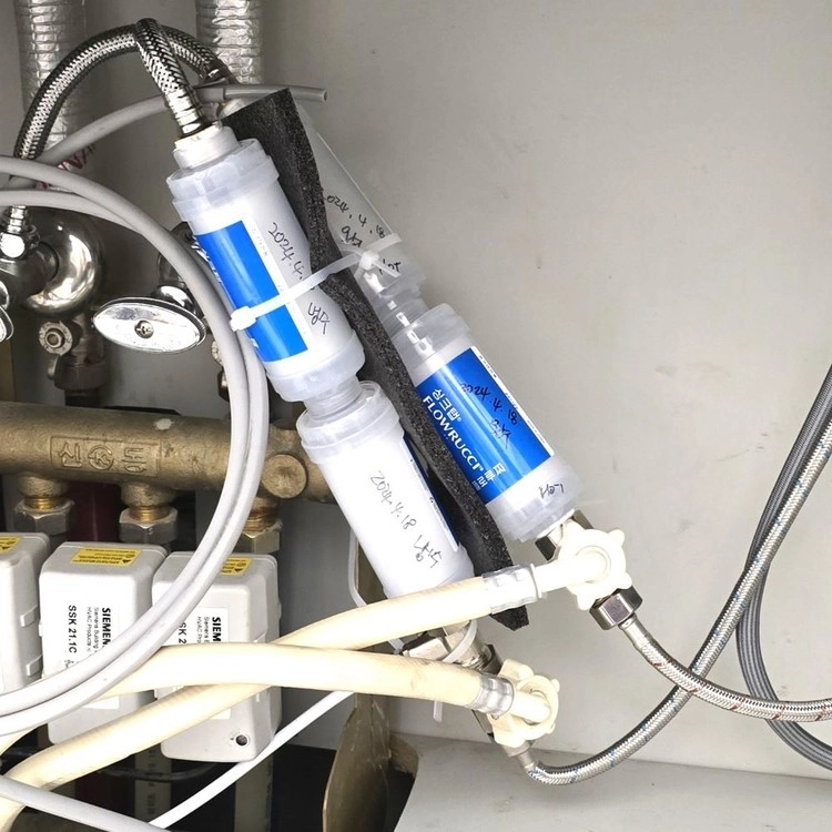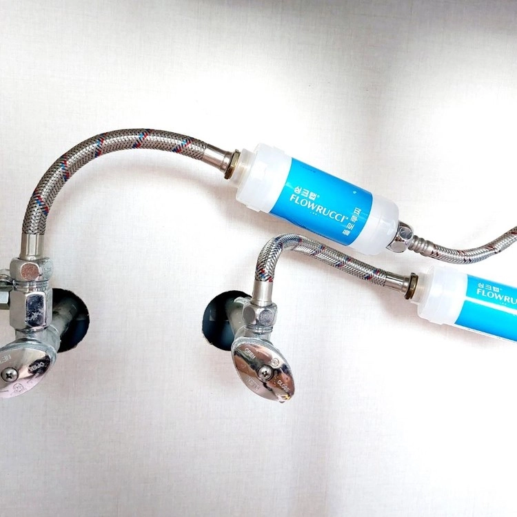 무타공·무전원 수전 직수 정수기 필터로, 플로루찌 필터는 미세플라스틱·녹물·염소·석회·세균 저감 효과를 제공합니다.