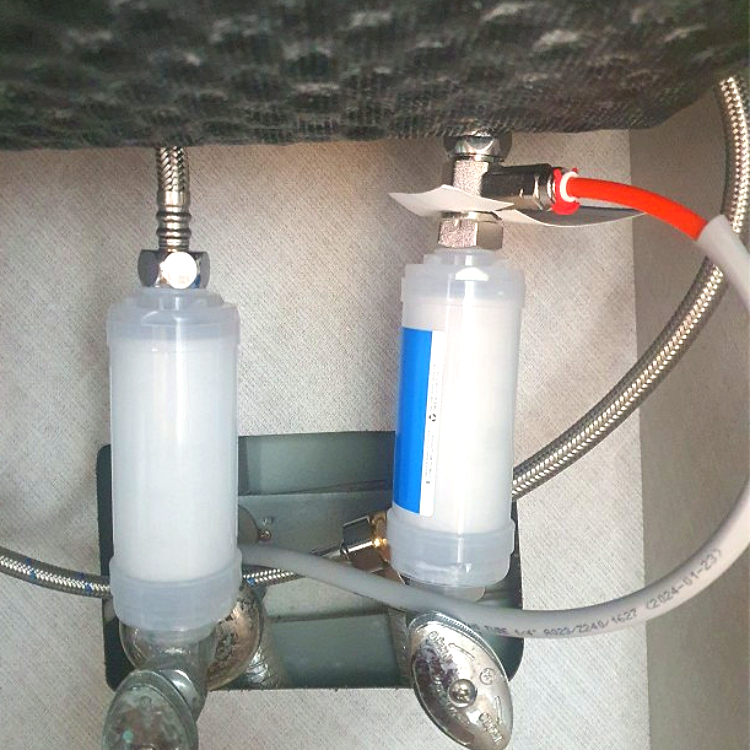수전 라인 녹물·석회 저감 — 언더싱크 무타공·무전원 직결, 유량 저하·누수 최소화