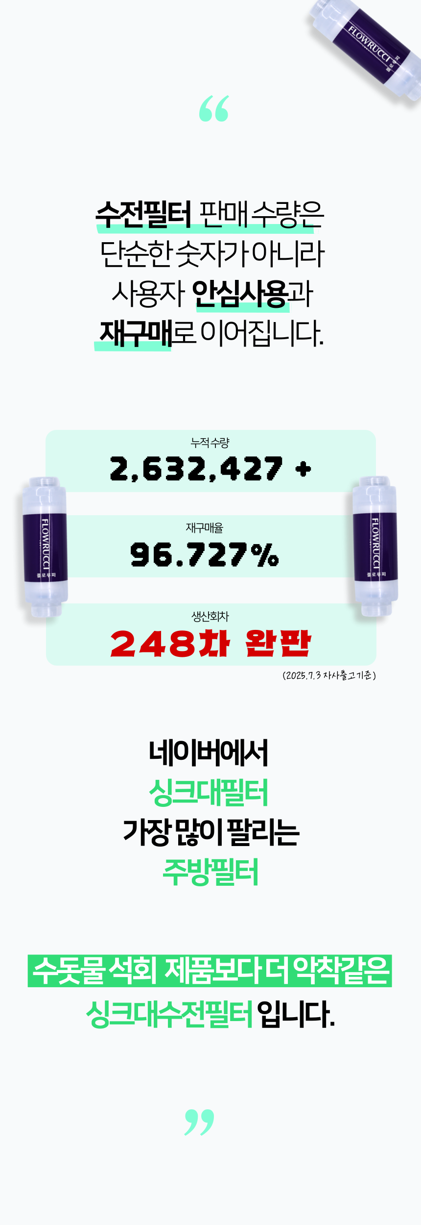플로루찌 필터는 해당 기능을 모두 만족하며, 고용량 필터로 12개월까지 사용할 수 있다는 장점이 있습니다.