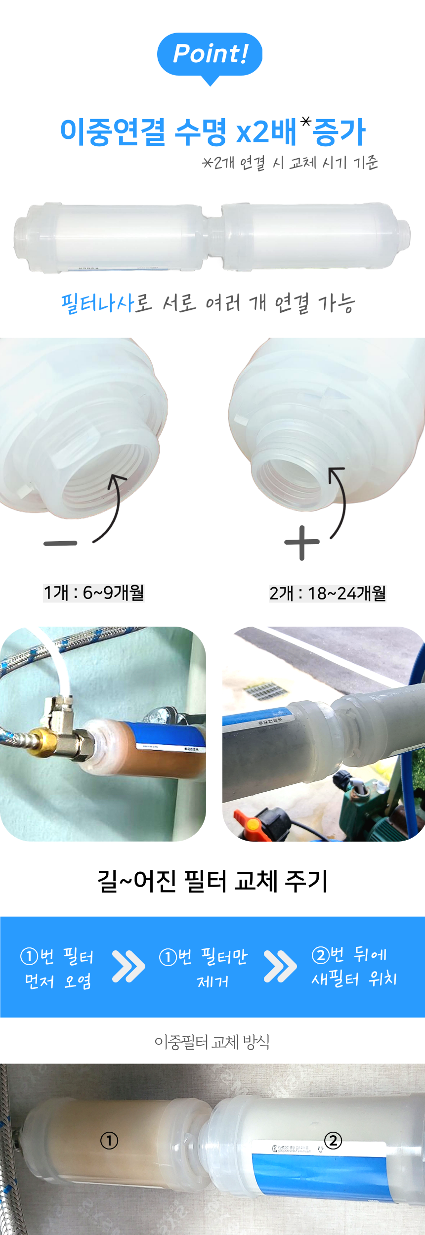 - 멀티 연결 가능 방식; 필터 수명 최대 2배 연장